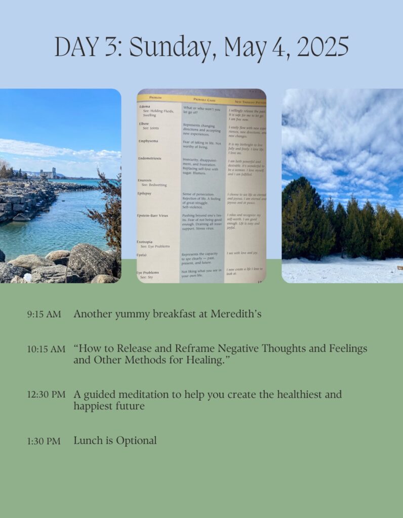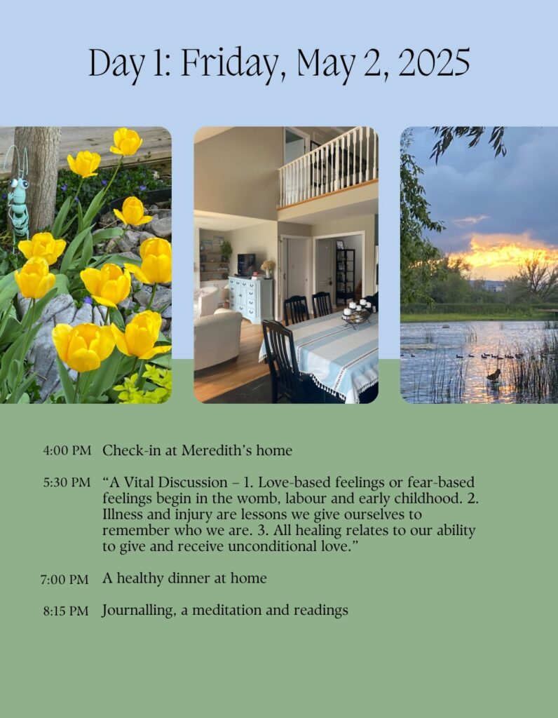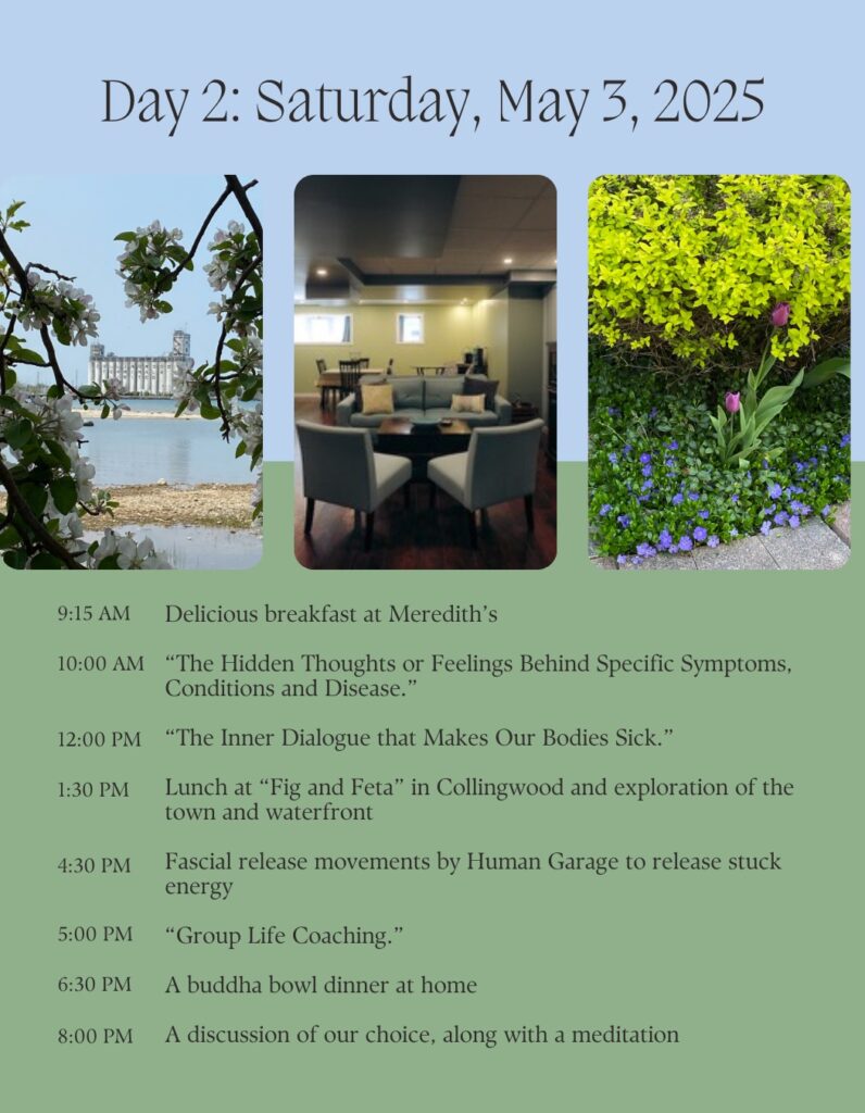 I feel it’s important to remind you that I am a Registered Holistic Nutritionist, who taught this subject and others at four locations of The Canadian School of Natural Nutrition in Ontario for a decade. I am also an accredited life coach, well versed in helping individuals identify the thoughts and feelings that are hurting them and convert them into health giving energy. And this is my 21st retreat, so I am well versed in hosting retreats and ensuring everyone has exactly what they need! My three books also support and further explain the concepts that will be discussed in this retreat.