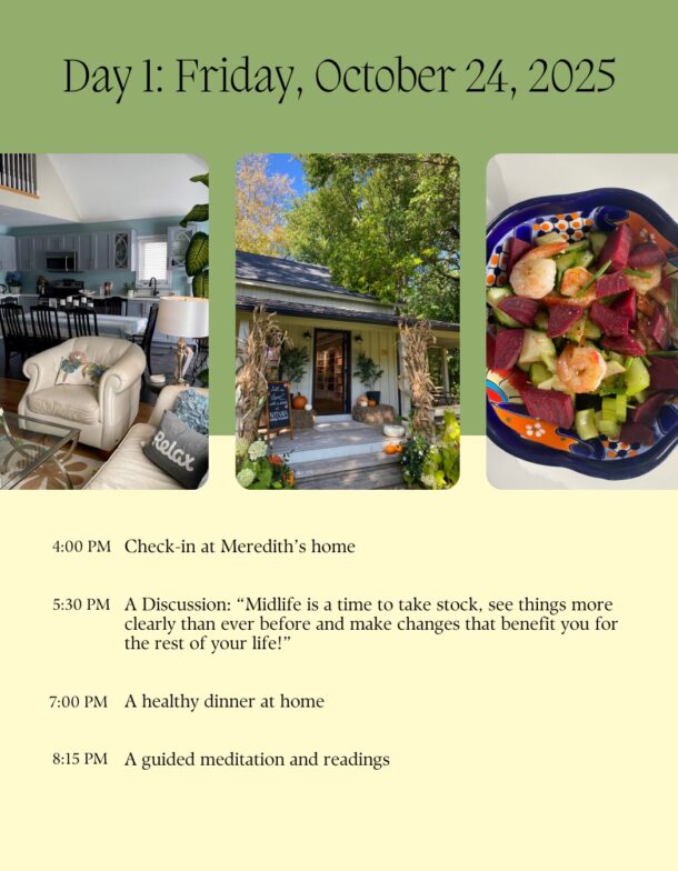 I felt this term perfectly matched my vision for a retreat for women who are experiencing the woes of midlife.